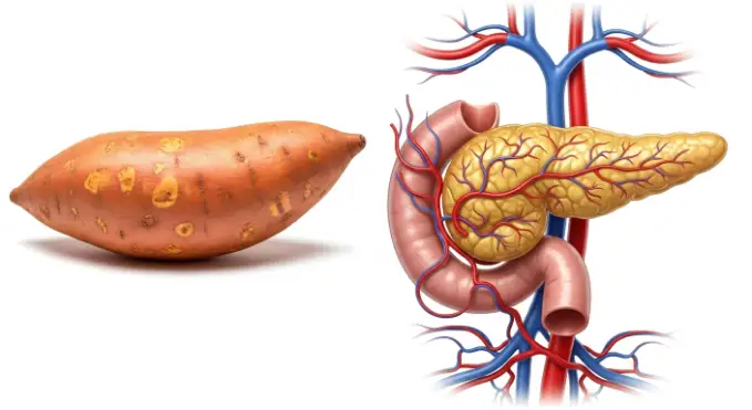 Süßkartoffeln sehen aus wie die Bauchspeicheldrüse. Sie können tatsächlich das Gleichgewicht des glykämischen Index der Diabetiker halten. In der Süsskartoffel steckt ein Stoff namens Caiapo. Versuche mit Caiapo zeigten daraufhin, dass Personen, die an Diabetes mellitus vom Typ II litten, eine Senkung ihres Nüchternblutzuckerspiegels erlebten. Süßkartoffeln haben einen natürlich hohen Gehalt an Vitamin B6 . Mehrere Studien zeigten, dass regelmäßiger Verzehr von Nahrungsmitteln, die Vitamin B6 enthalten, das Risiko von Bauchspeicheldrüsenkrebs erheblich reduziert und dessen Wachstum deutlich hemmt.