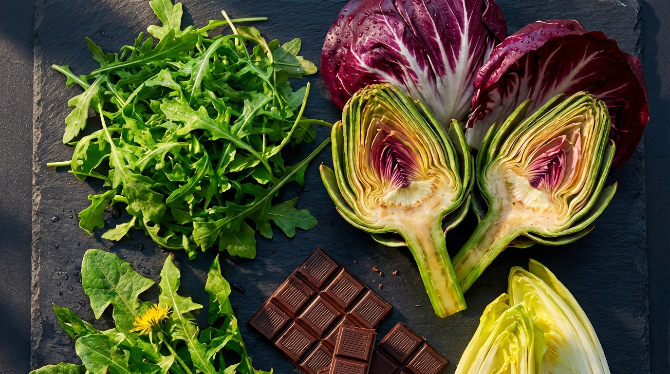 Gemüse und Salate: Rucola, Radicchio, Endivien, Chicorée, Artischocken, Löwenzahn und Grünkohl enthalten reichlich Bitterstoffe. Versuche, täglich eine Portion bitteres Blattgemüse zu essen.