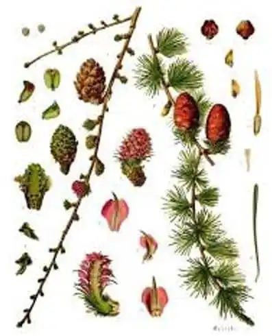 Die Lärche hilft, Energie und innere Kräfte wieder frei fließen zu lassen. Das ätherische Öl wirkt ganz besonders antibakteriell, vor allem auch bei Eitererregern wie Pneumokokken. Es ist daher ganz besonders zum Einsatz bei Atemwegserkrankungen geeignet. Sie wirkt erweichend, erwärmend und harntreibend. Daher wird sie bei Blasenleiden, Blasensteinen, Blutungen, Würmern, Nervenschmerzen, Wunden, eiternden Geschwüren, nässenden Flechten, Grind, Bandwürmern, Durchfall, Gallensteinen und zur Förderung der Menstruation verabreicht. Medizinisch verwendet werden dabei die Rinde, das Harz, junge Sprosse und die Nadeln.