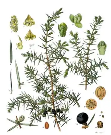 Immergrüner Strauch 3-5 m oder mehrstämmiger Baum bis 15 m, oft mit säulenartigem Wuchs, aber auch niederliegend (Gebirgsform: 20-50cm) Das Holz ist für Drechsler- und Schnitzarbeiten begehrt und wird auch als Räuchermittel verwendet. Wacholderbeeren werden zur Behandlung von Verdauungsbeschwerden (dyspeptische Beschwerden) wie Blähungen, Völlegefühl, Übelkeit, Erbrechen, Durchfall oder auch Appetitlosigkeit verwendet. Alleine oder in Kombination mit anderen pflanzlichen Mitteln gegen Verdauungsstörungen wirken die Beeren ganz allgemein unterstützend auf die Verdauungsfunktion. Traditionellerweise findet Wacholder außerdem zur Unterstützung der Nierenfunktion, beispielsweise bei Entzündungen des Nierenbeckens und der Harnblase, Anwendung. Mit den Beeren werden auch Durchspülungstherapien bei bakteriellen und entzündlichen Erkrankungen der Harnwege durchgeführt.