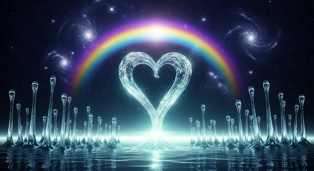 Wie ein Licht, dass dem Regenbogen entspringt, leuchtet eure Seele in den Wässern eurer Herzen. Voller Liebe, voller Licht, voller Güte und voller Sein auf dem Pfad der Tugenden zu den innersten Kammern und Gemächern eures ureigensten Seins.