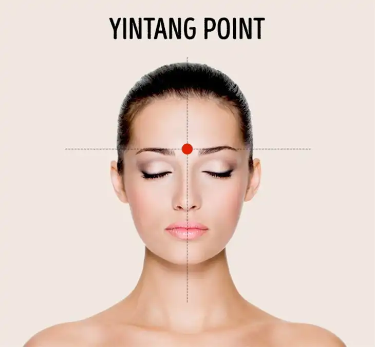 Der Punkt des dritten Auges oder Yintang, befindet sich zwischen den Augenbrauen, an der Stelle, wo der Nasenrücken in die Stirn übergeht. Dieser Punkt ist auch für die Beseitigung einer Ermüdung der Augen zuständig.