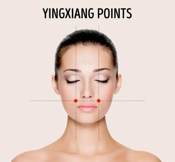 Diese Punkte befinden sich auf beiden Seiten der Nasenlöcher auf einer Linie mit den Augen. Um sie zu finden, ertaste eine Vertiefung am unteren Ende der Wangenknochen. Du hilfst somit dabei, die Nebenhöhlen zu öffnen, Kopf- und Zahnschmerzen zu reduzieren und Stress abzubauen.